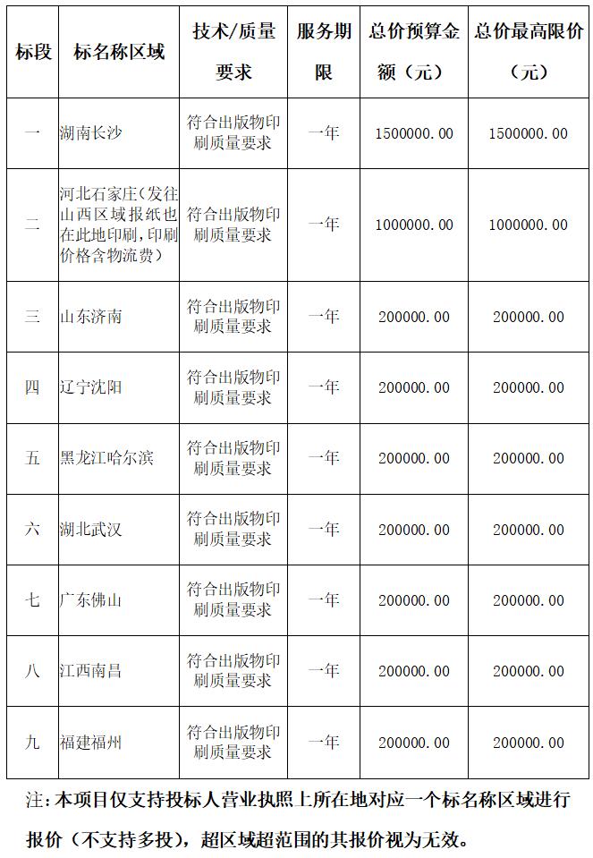 7、投標人僅對所投標段進行報價,印刷費報價應(yīng)根據(jù)套紅印刷(2+1)的每印張報價,否則視為無效響應(yīng);